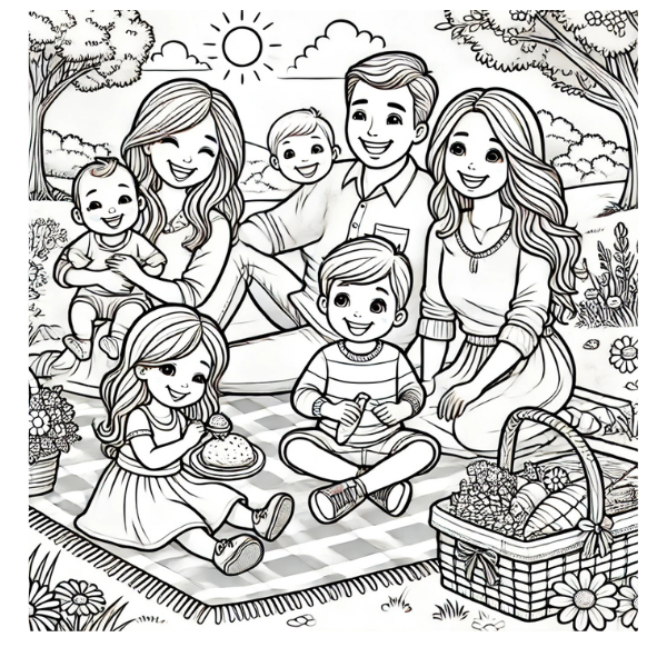 Happy family having a picnic in a garden.
